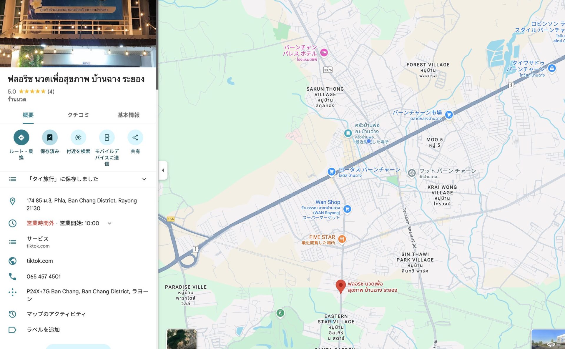 ラヨーンでマッサージ店を探していたら一件良さそうなのを見つけました。