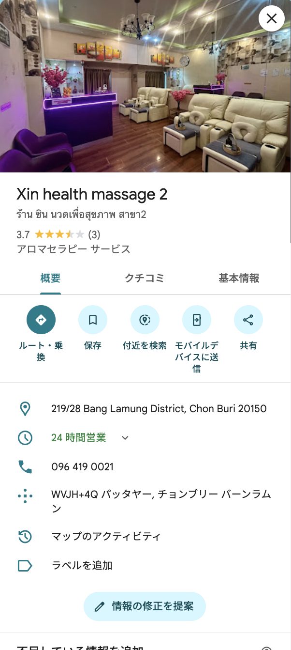 今回行ってきたのはSoi Pattaya13/1というマッサージ通りにある「Xin health massage2」です。比較的な大きな通りにあるので、まず迷うことはないと思います。