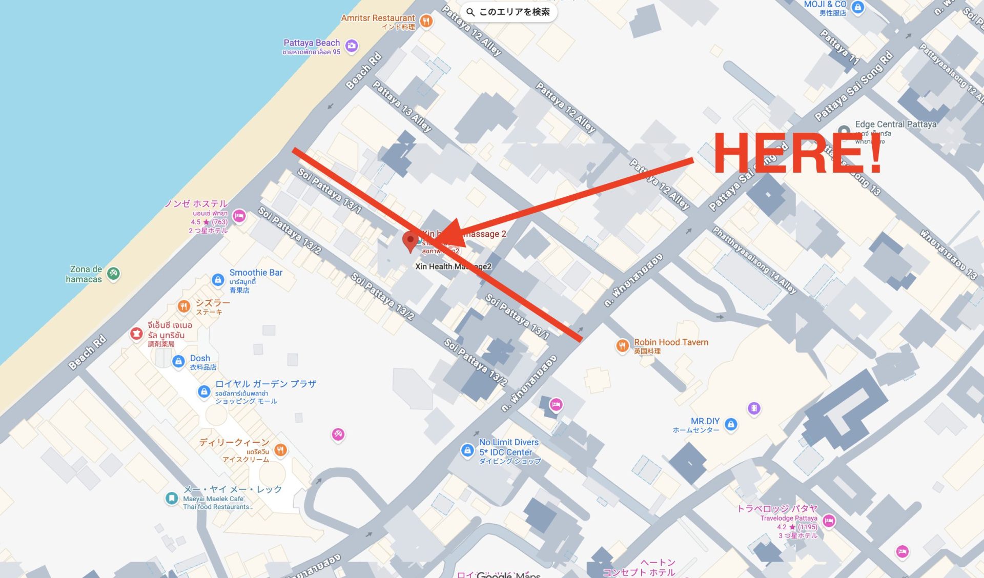 いざ、Soi Pattaya13/1の「Xin health massage2」へ。